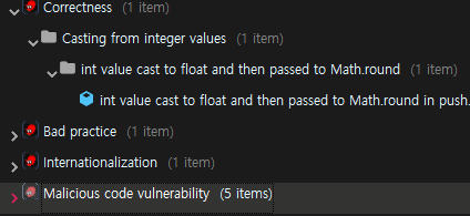인텔리제이에서 제공해주는 정적 분석기 중 하나인 findbug를 통해 프로젝트를 분석해보니 아래와 같이 몇 개의 버그를 찾아내주었다.