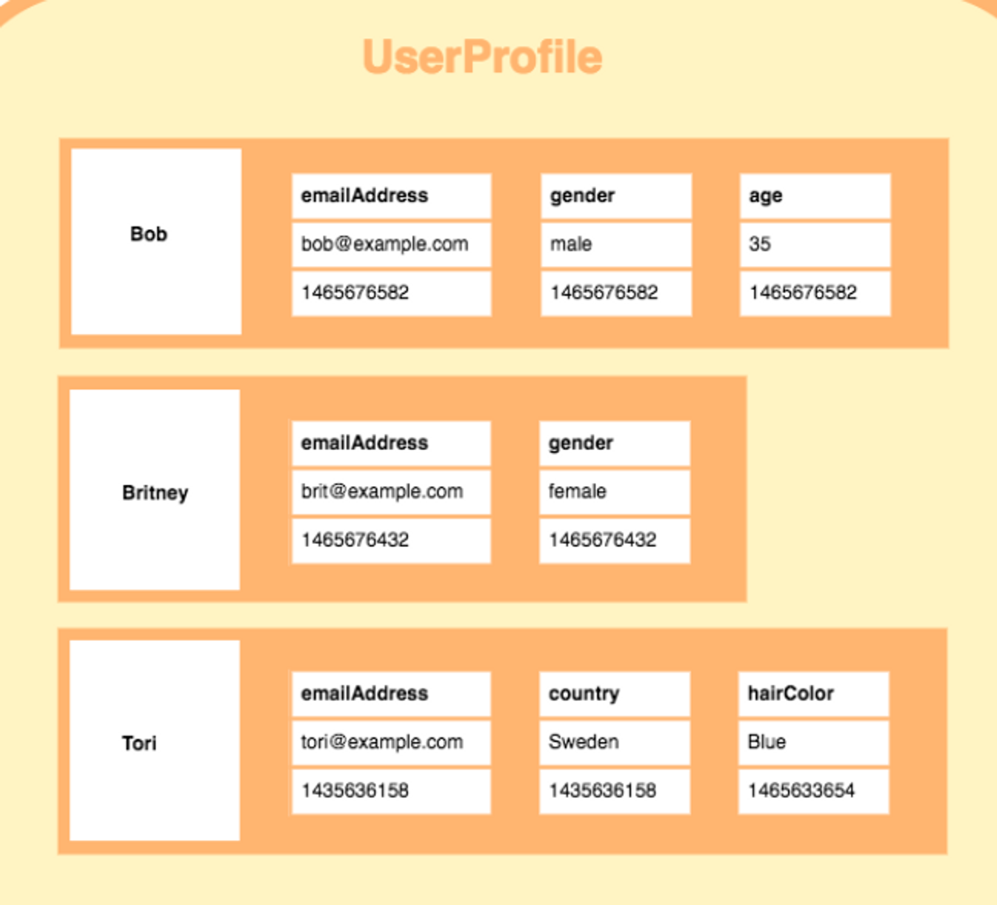 - 아래 그림과 같이 이름(key)에 해당하는 값에 스키마들이 상이한 것을 볼 수 있다.